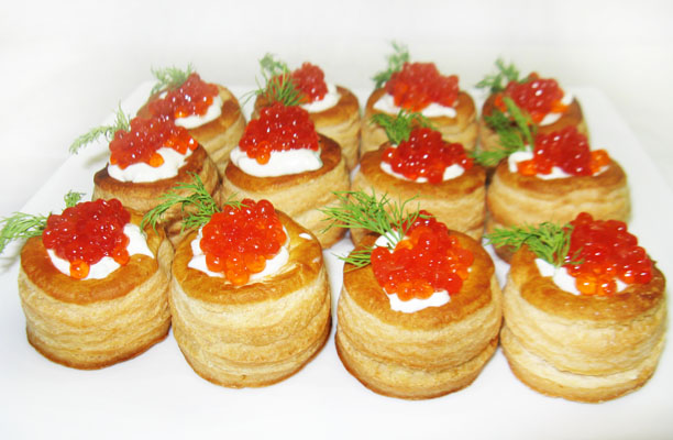 Икра вообще отличный выход. Ее можно положить в тарталетки - корзиночки из теста (продаются в супермаркетах, имеют диаметр пятирублевой монетки). Тарталетку, масло, икру - просто, как бутерброд. Но празднично!
