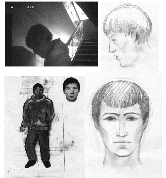 Убийцу запечатлела видеокамера. На вид ему 20–30 лет, рост около 170–175 см, одет в тёмную короткую куртку с капюшоном, чёрные брюки, спортивную обувь.