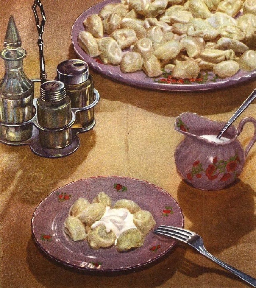 А пока варится холодец, можно всей семьей сесть за лепку пельменей. Это была не еда, а ритуал, когда рюмкой вырезались кружочки из теста, и все, от мала до велика, собравшись за одним столом, аккуратно лепили пельмешки, а потом складывали их на огромные подносы из фанеры. Чтобы через несколько часов тем же составом за тем же столом уплетать за обе щеки результат своего кулинарного умения.