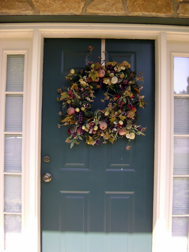 Но прежде всего нужно украсить с внешней стороны входную дверь, ведь именно ее сначала увидят ваши гости. Веселая и слегка «новогодняя» дверь сразу же создаст у них соответствующее настроение. Для этого нужно повесить на нее еловый венок: согните в форме круга несколько больших веток, скрепляя их проволокой. Получившееся украшение можно дополнить шишками, ленточками, небольшими игрушками.