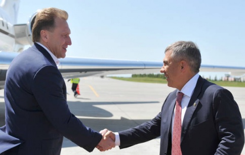 В Казань с рабочим визитом прибыл первый заместитель председателя правительства РФ Игорь Шувалов. В международном аэропорту «Казань» его встретил президент Татарстана Рустам Минниханов.